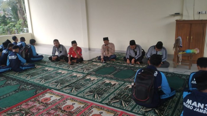 Muaro Jambi - Kepala Madrasah Aliyah Negeri (MAN) 3 Muaro Jambi, Kardono Z, S.Pd., M.Pd., memberikan pengarahan kepada seluruh siswa di aula masjid MAN 3 Muaro Jambi pada Jumat, 17...