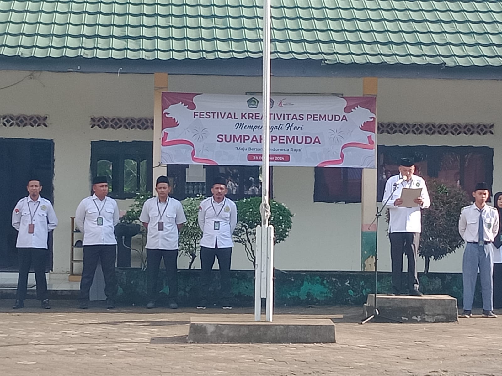 Kepala madrasah selaku pembina upacara membacakan amanat sambutan Menteri Pemuda dan olahraga tentang makna Hari Sumpah Pemuda untuk terus menjaga persatuan, semangat belajar, dan kebersamaan di tengah keberagaman.