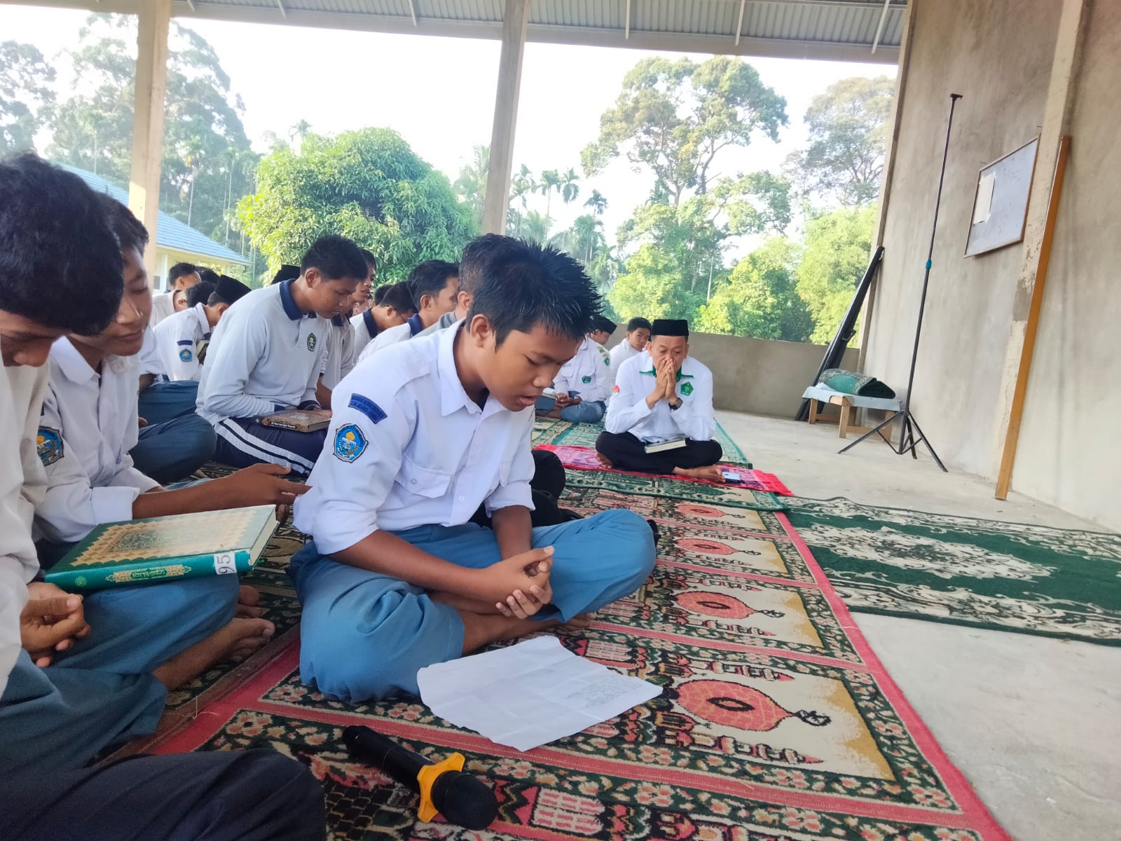 Di akhir kegiatan pembiasaan, seorang siswa yang telah ditunjuk diberi kesempatan untuk memimpin doa shalat Dhuha. Momen ini memberikan kesempatan bagi siswa untuk belajar memimpin doa, sekaligus menambah kepercayaan diri dan pemahaman mereka tentang pentingnya berdoa setelah melaksanakan ibadah. Kegiatan ini diharapkan dapat memperkuat karakter religius siswa dan mempererat kebersamaan di antara mereka. (MW)