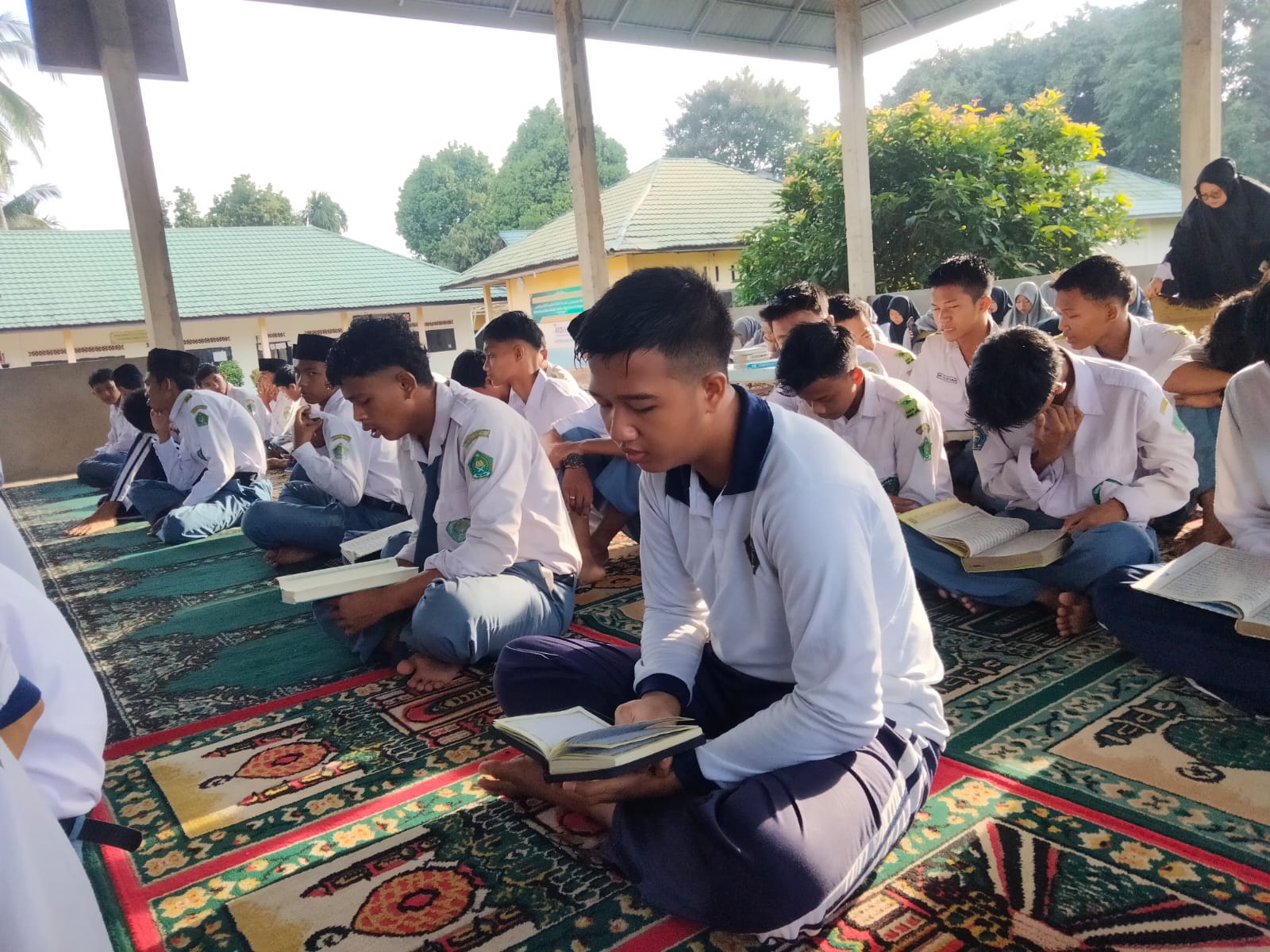 Selasa, 19 November 2024, MAN 3 Muaro Jambi kembali melaksanakan pembiasaan pagi dengan kegiatan rutin yaitu shalat Dhuha dan membaca Al-Qur'an. Kegiatan ini dilaksanakan bersama-sama oleh siswa dan bapak-ibu guru, menciptakan suasana religius dan penuh kekhidmatan.