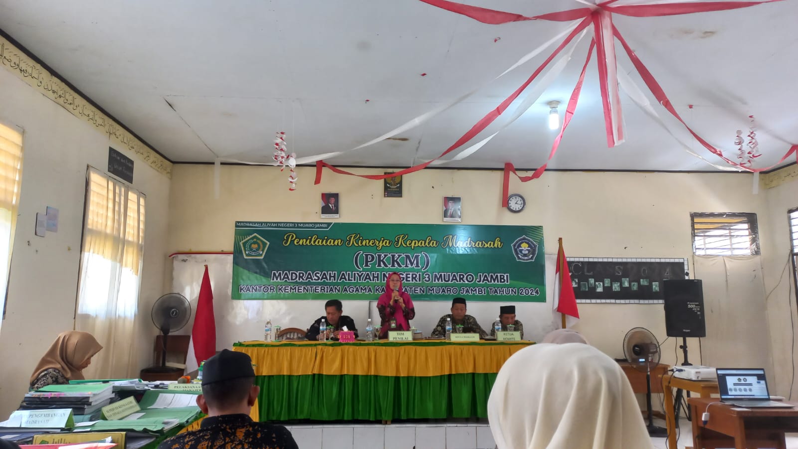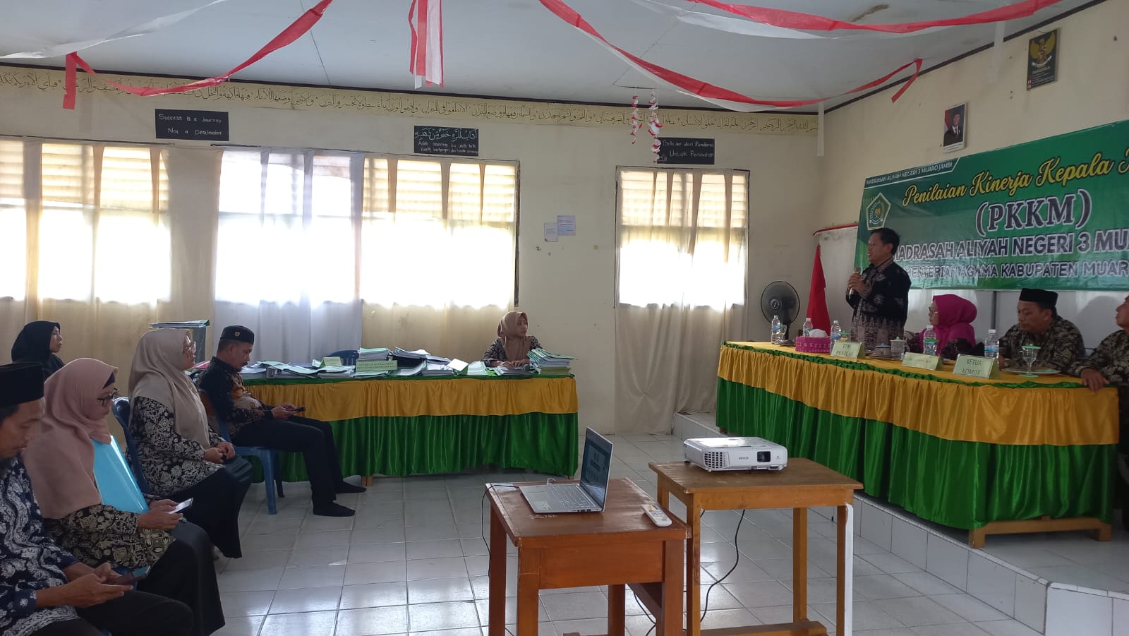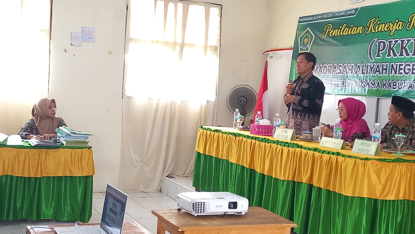 Kepala MAN 3 Muaro Jambi Dr. H. Moeh. Djuddah, S.Ag, M.Pd.I mengucapkan terima kasih kepada tim penilai kinerja kepala madrasah. Penilaian Kinerja Kepala Madrasah (PKKM) MAN 3 Muaro Jambi tahun 2024 berlangsung dengan lancar pada Rabu, 11 Desember 2024. Kegiatan ini ditutup dengan sesi refleksi dan pemberian evaluasi oleh Ketua Tim Penilai, Bapak Alimuddin, S.Pd, M.Pd.I, yang memberikan beberapa catatan penting sebagai bahan perbaikan bagi madrasah.