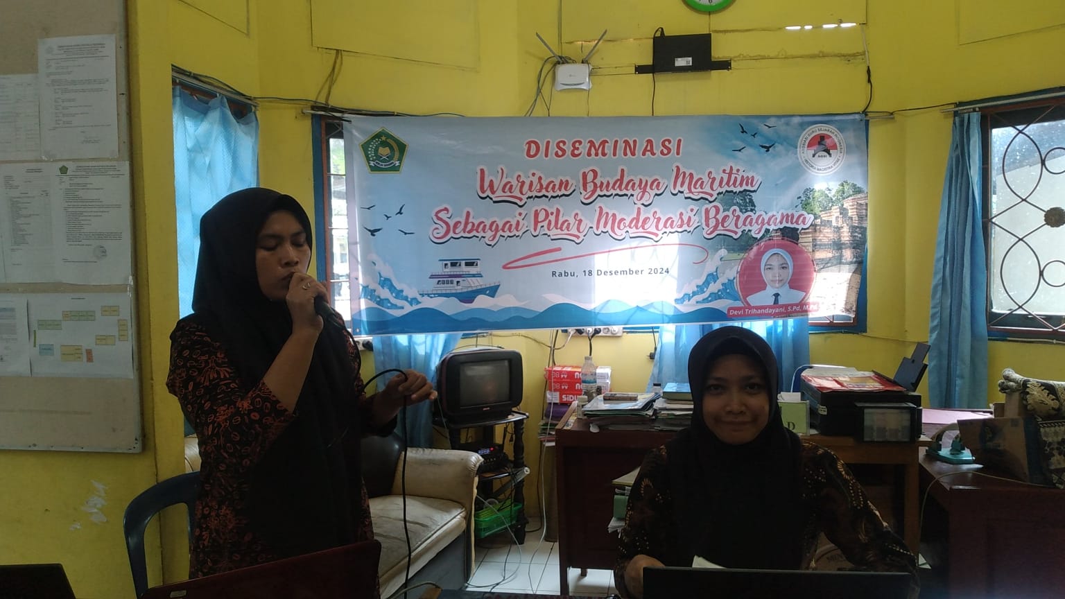Diseminasi kali ini disampaikan oleh Ibu Devi Trihandayani, S.Pd., M.Pd., dengan topik "Warisan Budaya Maritim sebagai Pilar Moderasi Beragama". Materi ini merupakan hasil dari pengalaman beliau mengikuti Simposium Nasional Guru Sejarah ke-VI di Jambi pada 17-20 Oktober 2024 oleh Asosiasi Guru Sejarah Indonesia (AGSI).