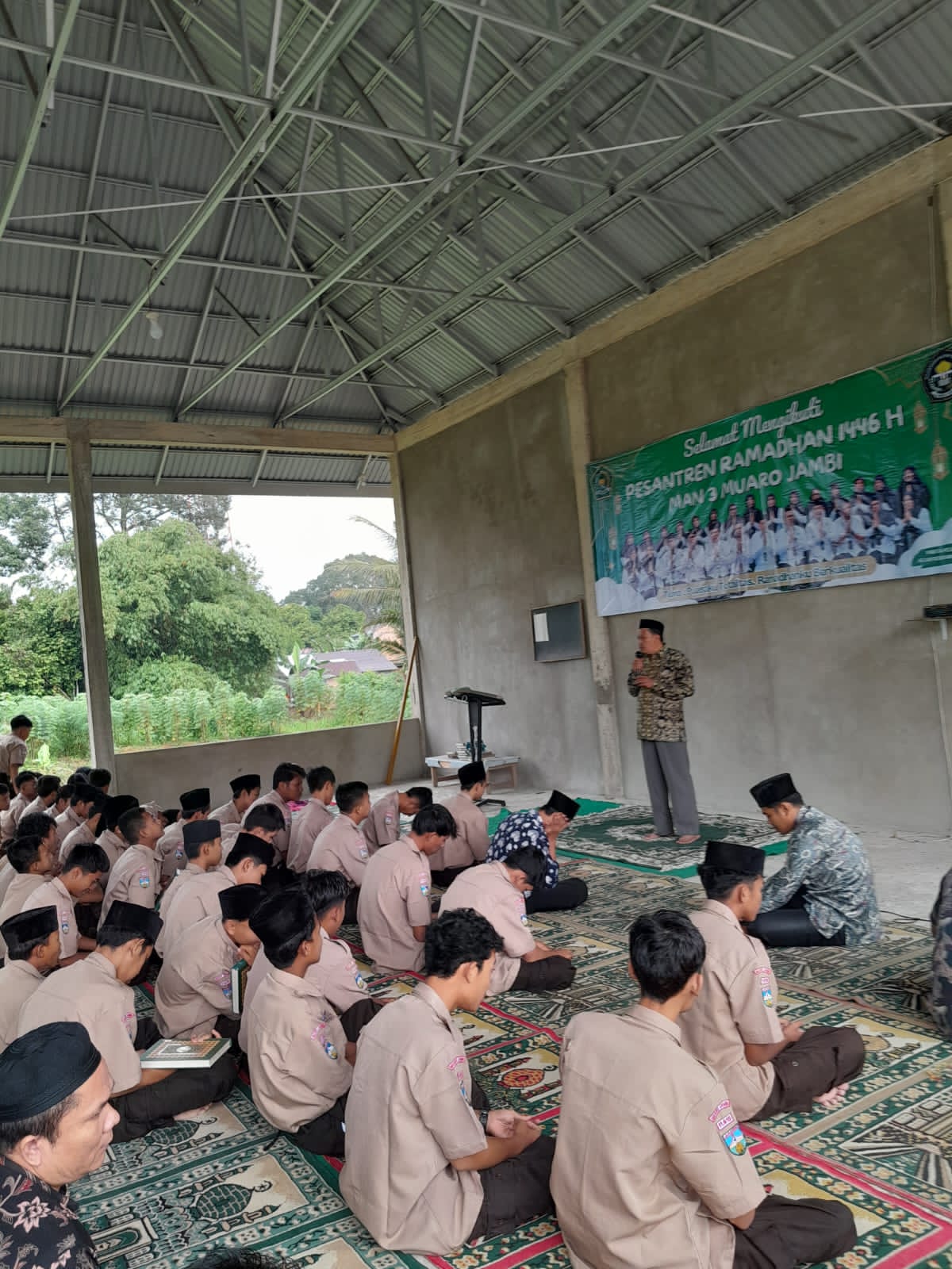 "Pembelajaran di madrasah di maulai, tidak ada yang tidak hadir. Bulan ini bulan ramadhan, bulan panen pahala. Bulan dimana Allah SWT mengampuni segala dosa. Minta maaf kepada sesama manusia. Ramadhan momen memperbaiki diri semaksimal mungkin. Dengan mengucapkan bismillahirrahmanirrahim pesantren ramadhan MAN 3 Muaro Jambi secara resmi di buka," ujarnya. (MW)