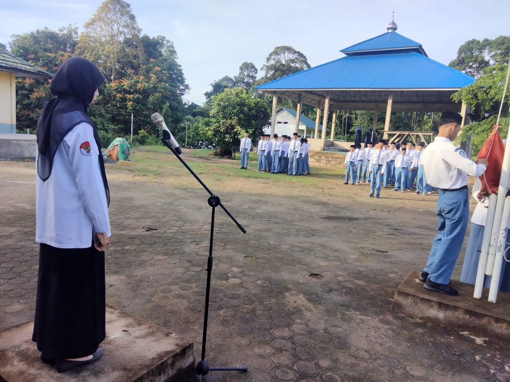 Pembina upacara kali ini adalah Ibu Paini, S.Pd, salah satu guru senior yang dikenal berdedikasi. Dalam amanatnya, beliau menyampaikan beberapa hal penting yang menjadi perhatian bersama, baik bagi siswa maupun guru. Salah satu poin utama dalam amanatnya adalah evaluasi terhadap pelaksanaan upacara yang dilakukan oleh OSIM (Organisasi Siswa Intra Madrasah). Beliau menekankan bahwa meskipun upacara sudah berjalan baik, masih banyak aspek yang perlu ditingkatkan, terutama dalam hal kedisiplinan, kekompakan barisan, dan kesiapan petugas upacara.