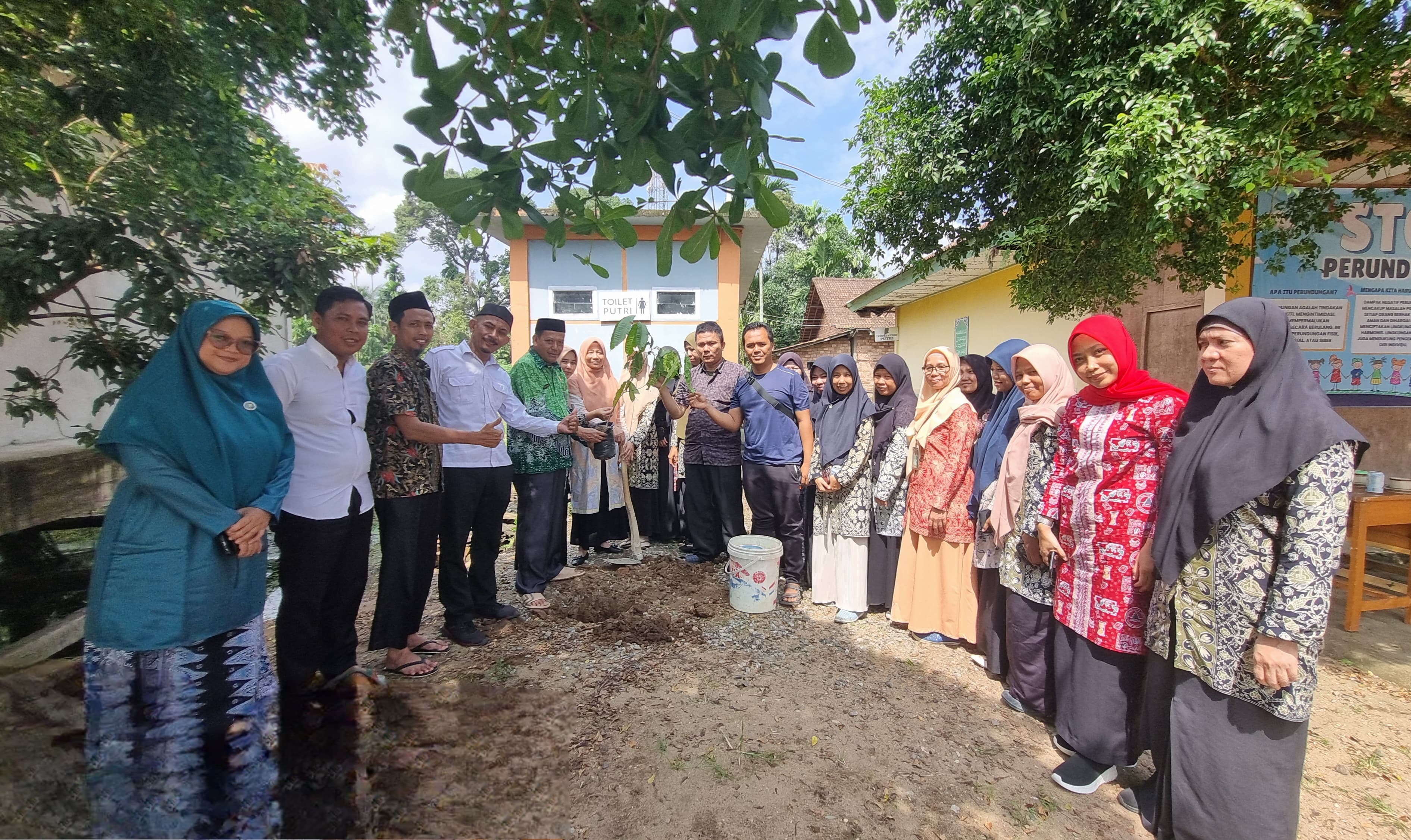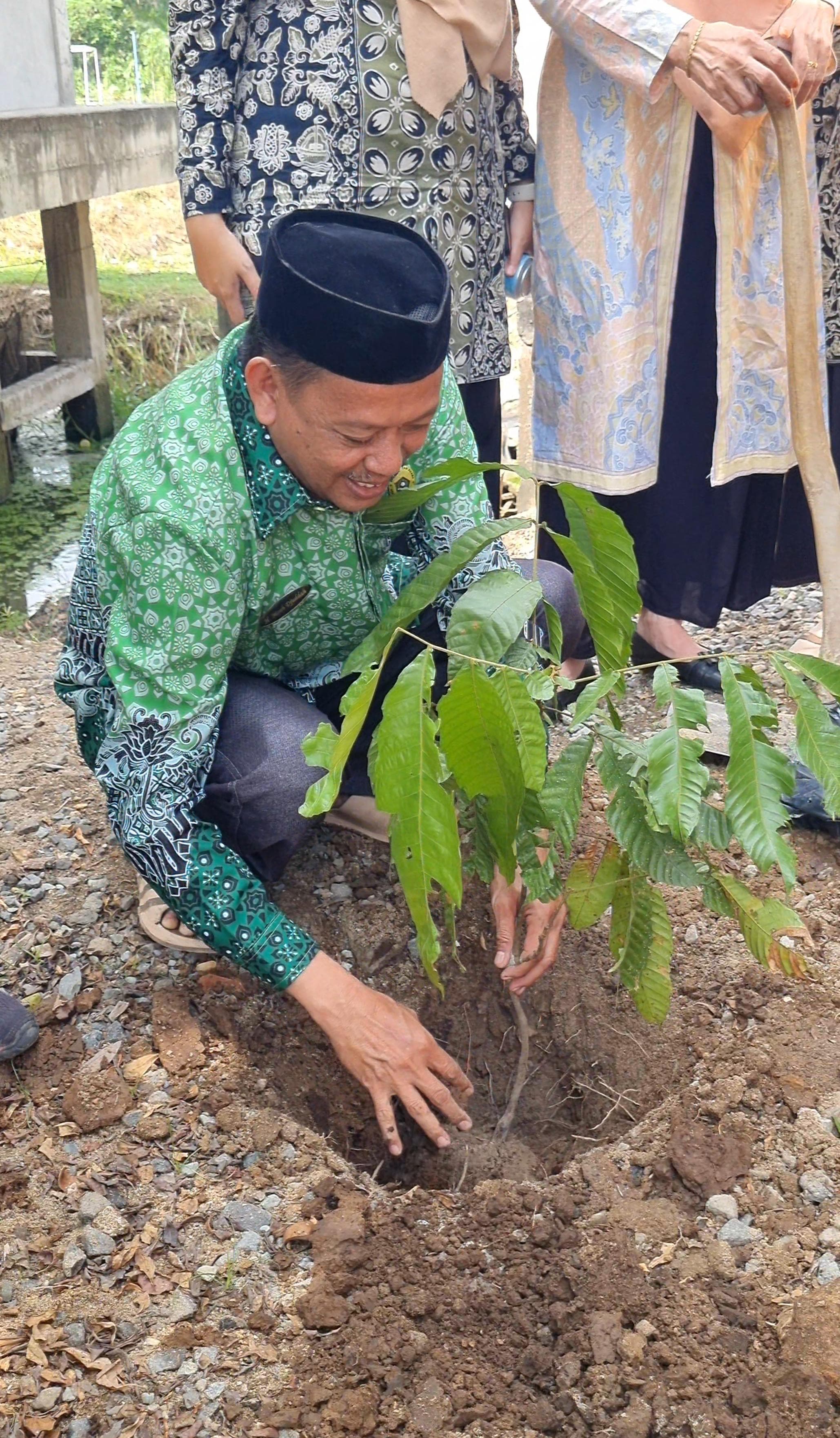 Puncak kegiatan Hari Bumi di MAN 3 Muaro Jambi ditandai dengan penanaman pohon matoa secara simbolis oleh Kepala Madrasah Dr. H. Moeh. Djuddah, S.Ag, M.Pd.I, didampingi oleh Kaur TU, para Wakil Kepala, serta para guru. Pohon matoa—tanaman endemik Indonesia yang memiliki nilai ekologis dan ekonomis—dipilih sebagai simbol harapan akan masa depan bumi yang lebih hijau dan sehat. Penanaman ini bertujuan tidak hanya untuk memperindah lingkungan madrasah, tetapi juga sebagai edukasi langsung tentang pentingnya menanam pohon sebagai solusi sederhana namun berdampak besar bagi kelestarian alam.