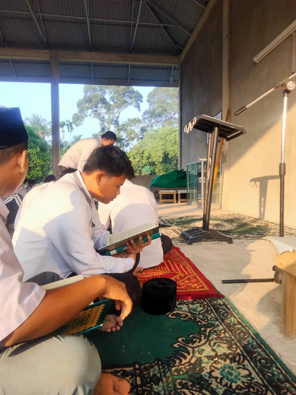 Setelah shalat Dhuha, siswa melanjutkan dengan membaca Al-Qur’an secara individu. Setiap siswa membawa mushaf masing-masing dan membaca surah-surah pendek atau ayat-ayat Al-Qur’an yang menjadi bagian dari pembiasaan harian mereka. Meskipun dilakukan secara pribadi, suasana madrasah terasa tenang dan religius, mencerminkan semangat spiritual yang tumbuh dari kesadaran diri peserta didik.