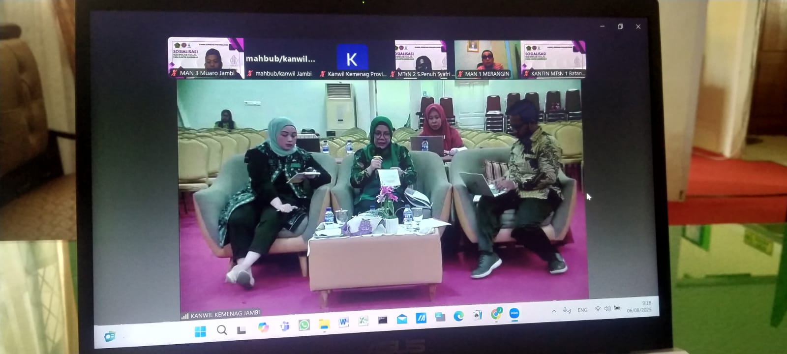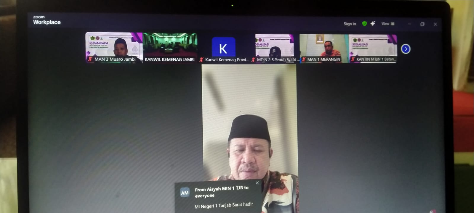 Muaro Jambi, 6 Agustus 2025 — Kepala MAN 3 Muaro Jambi, Dr. H. Moeh. Djuddah, S.Ag., M.Pd.I, mengikuti kegiatan Sosialisasi Sertifikasi Halal pada Kantin Madrasah yang diselenggarakan oleh Kantor Wilayah Kementerian Agama Provinsi Jambi secara daring melalui Zoom Meeting.