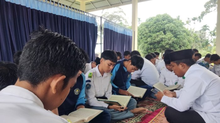 Sebagai upaya menanamkan nilai-nilai religius dan memperkuat karakter spiritual peserta didik, MAN 3 Muaro Jambi kembali melaksanakan kegiatan rutin shalat Dhuha dan tadarus Al-Qur'an, pada Selasa, 7 Oktober 2025.