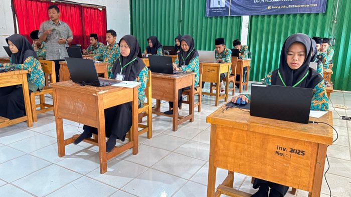 Pelaksanaan TKA dimulai sejak pukul 07.30 WIB dan menggunakan satu ruangan yang dibagi dalam tiga sesi ujian. Setiap sesi, diikuti peserta dengan tertib dan terjadwal. Pengaturan ini dilakukan agar pelaksanaan ujian berjalan efektif dan tetap menjaga ketertiban di lingkungan madrasah.